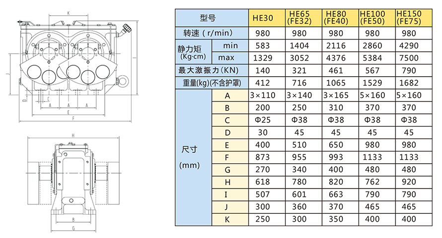 HE(FE)系列激振器是由內(nèi)部偏心塊通過旋轉(zhuǎn)產(chǎn)生慣性,將其安裝在振動篩設(shè)備上,從而為設(shè)備提供篩分物料的動力。先通過內(nèi)部振動讓物料進行拋投運動,再通過篩網(wǎng)篩選從而達成篩分物料的目的。